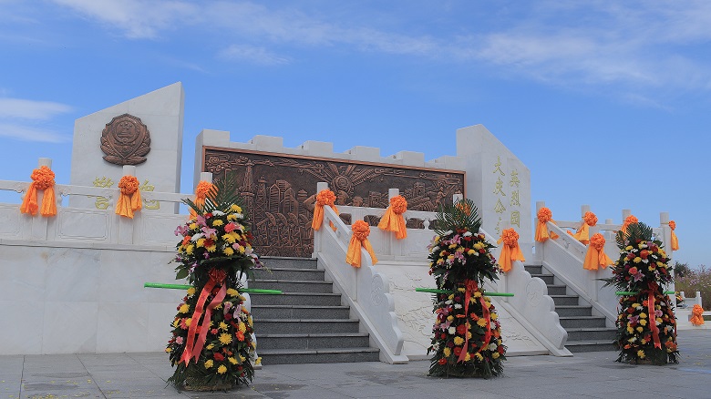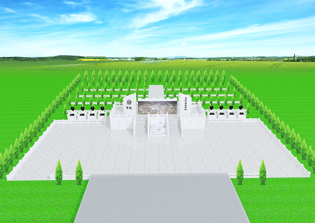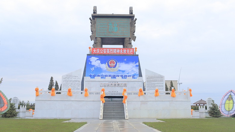大慶公安英烈園座落于大慶市讓胡路區(qū)天堂墓園內(nèi),由天堂墓園有限公司獨資捐建,整體設(shè)計以“肅穆、莊重、簡潔、大氣”為總基調(diào),將大慶市公安局和公安英烈有關(guān)信息融入設(shè)計理念之中,體現(xiàn)公安特點,突出紀(jì)念意義。英烈園位于整個墓園的中軸線上,整體呈南北向的長方形形狀,由墓前廣場、主體形象墻和英烈墓地三部分組成,英烈墓地560平。四周環(huán)種柏樹70棵,代表建局以來因公犧牲的70位民警,寓意英烈精神松柏長青。
